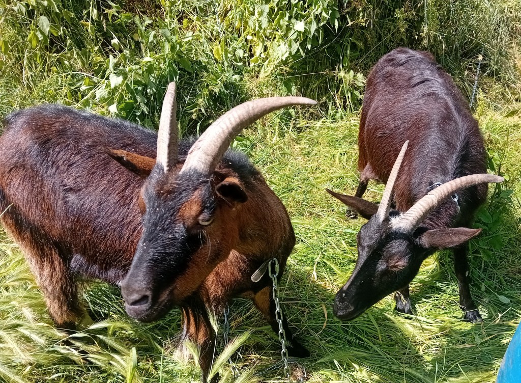 Billy et Mimi sont à l’œuvre. Depuis mercredi matin, les deux chèvres de Michel ont investi, rue des Fossés, un talus envahi par les herbes folles et autres végétations indisciplinées et fournies. Bien moins bruyantes qu’une tondeuse, travailleuses acharnées, ces ambassadrices de l’ éco -pâturage sont assurément dans la tendance écolo et, de surcroit,, une main d’œuvre peu coûteuse.. Sur ce terrain escarpé les deux cabris jouent les semi- aventuriers. Ces deux biquettes- telles celle de Monsieur Seguin- sont, tout de même, contraintes par piquets et cordes. Rêvent-elles aussi de liberté ? C’est peu probable, car ,ici, l’ herbe est bien plus verte, bien plus dense et même plus piquante qu’ailleurs ! L’ œil doux et la barbiche guillerette, elles prennent un malin plaisir à faire devenir chèvres, les chiens et chats du quartier d’ordinaire si tranquille !
