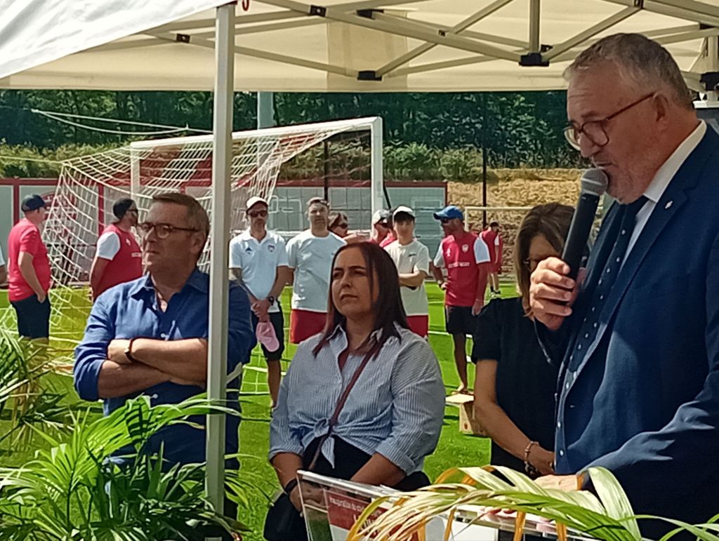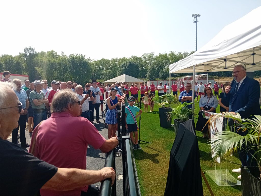 Il y avait donc du monde et du beau pour saluer cette réalisation et les nouveaux agencements de ses à-côtes. Même la météo était de la partie, encourageant les enfants à investir joyeusement cette nouvelle pelouse verdoyante, ballon au pied. Beaucoup d’habitants de la communauté de communes, dont sa présidente Karine Clément et et les maires alentours avaient aussi fait le déplacement. Tandis que responsables politiques locaux et départementaux, régionaux et représentants de l’Etat se succédaient à la tribune. Christophe Rauzy adjoint au maire, passionné de foot, jouait le maître de cérémonie.