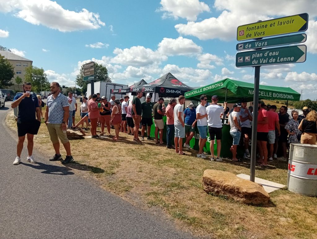 Attablés près de la buvette Philippe, venu de Sardières ( commune de Castanet ) et ses acolytes savouraient, gaiement, un nectar de houblon « Mes amis sont de Normandie. « m’explique Philippe. » Voilà une belle occasion de passer un après-midi sympa et convivial avec eux. D’autant que ce genre d’animation est rare dans notre secteur. « se réjouissait-il » Nous sommes à l’ombre, il fait beau et la bière est fraîche tout va bien, c’est super! » relevait, joyeusement, de concert, la bande de copains.