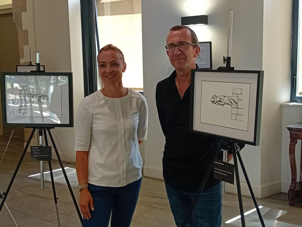 « Cette exposition n’a pas été préméditée » se défend d’un large sourire Jackie. Comme il l’explique le projet est né d’une conversation on ne peut plus banale. » Magali me faisait remarquer que l’on ne prêtait plus guère attention au détails et à ce qui nous entoure. J’ai trouvé qu’il y avait là matière à interroger. » Un réflexe très naturel pour Jackie surtout lorsque l’on sait qu’il est professeur de philosophie dans un lycée ruthénois. « Puis j’ ai découvert les talents de dessinatrice et peintre de Magali. Elle s’était, déjà, intéressée au détails d’une gargouille. De là est née l’idée de cette expo. »