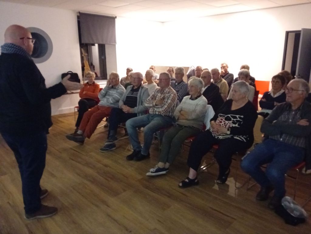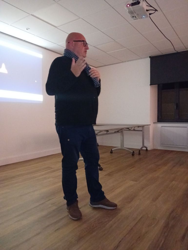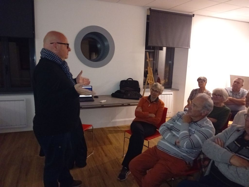 La salle située au-dessus de la bibliothèque a été transformée en cinéma éphémère. Chaises rouges en rang d’oignons face à l’écran, lumière tamisée invitaient le public à s’immerger dans l’histoire. Histoire qui s’écrivait avec une majuscule ce soir- là… C’est dans ce décor que le réalisateur et acteur Patrice Guillain présentait trois courts métrages : La Der des Der, Les Plaques et le 17 août à 17 heures. Un triptyque qui a conduit le public » sur le chemin de la mémoire ». Le rideau se levait alors sur ces destins singuliers, intimes marqués par les tragédies de l’Histoire.