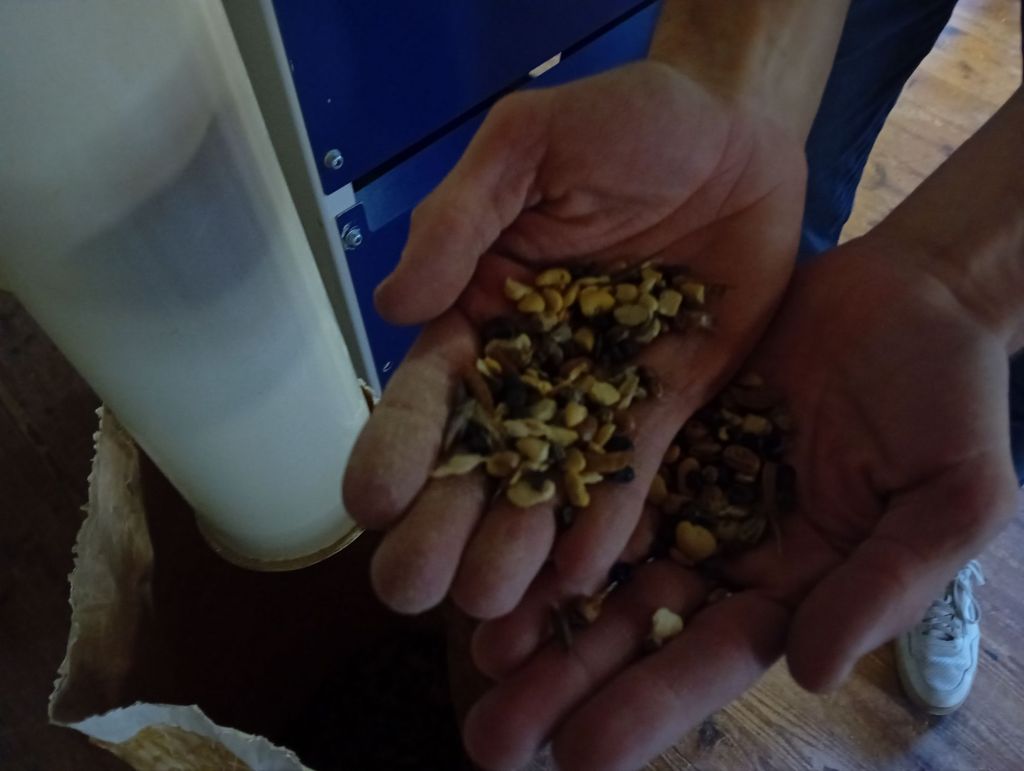 A l’intérieur, l’air est chargé de cette odeur douce et chaude de blé, presque sucrée. Les machines de nettoyage s’activent. Ça vibre, ça souffle, ça secoue, ça trie, ça tamise, ça libère le grain de ses impuretés…