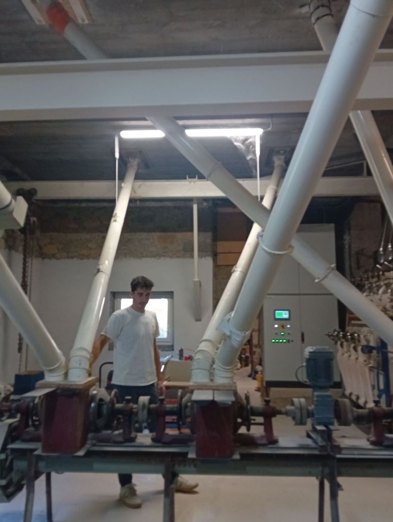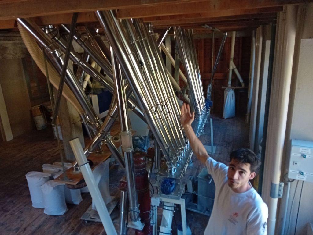 Comme quelques décennies plus tôt, en 1990, Joël et son frère Christian s’étaient inscrits, eux aussi, dans cette continuité familiale. Christian, formé à l’école de meunerie, et Joël diplômé en gestion comptabilité se complétaient parfaitement. Bien que les ambitions de Joël auraient pu le mener ailleurs, le cœur de histoire familiale le ramenait toujours ici. Un attachement profond qu’il confesse : « Le moulin j’ y ai grandi, j’ y ai toujours vécu… » En 2021, lorsque Christian choisit de s’engager dans de nouvelles aventures professionnelles, Loïck était déjà prêt à épauler son père. « J’avais fait l’école de meunerie à Surgères en Charente-Maritime, puis un apprentissage en alternance dans un moulin à Saint Etienne. » raconte-t-il.