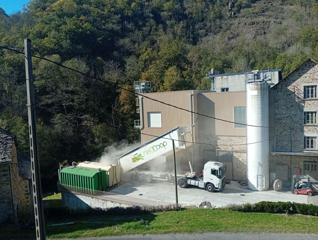 Allons faire un petit tour du propriétaire. A l’extérieur, un camion manœuvre lentement dans la cour étroite. le chauffeur s’y reprend centimètre après centimètre. « Ce n’est pas simple s’amuse Loicjk. Mais les livreurs ont l’habitude ». La benne s’ouvre, le blé ruisselle en cascade, comme une pluie dorée sous des volutes de fumée tourbillonnant dans la lumière automnale. C’est ici que commence l’histoire de la farine, l’or blanc du moulin. A l’arrière, les silos dressent leurs silhouettes massives, telles des sentinelles qui veillent au grain. Leur ventre regorge de ce blé, bientôt englouti dans les entrailles du moulin.