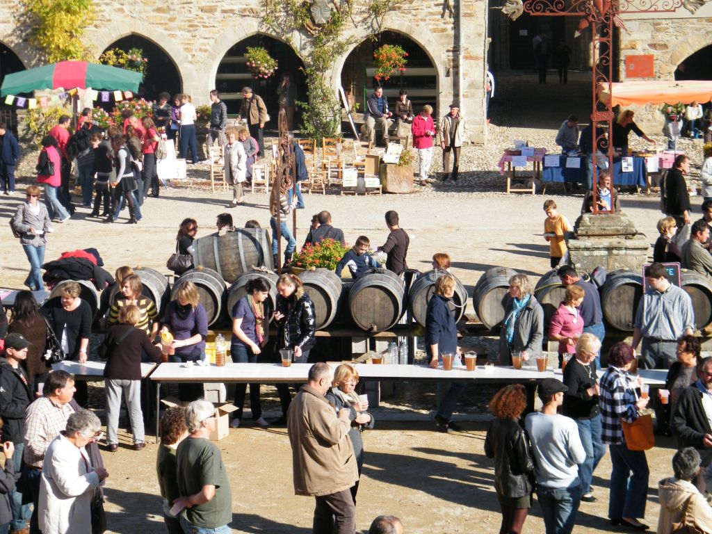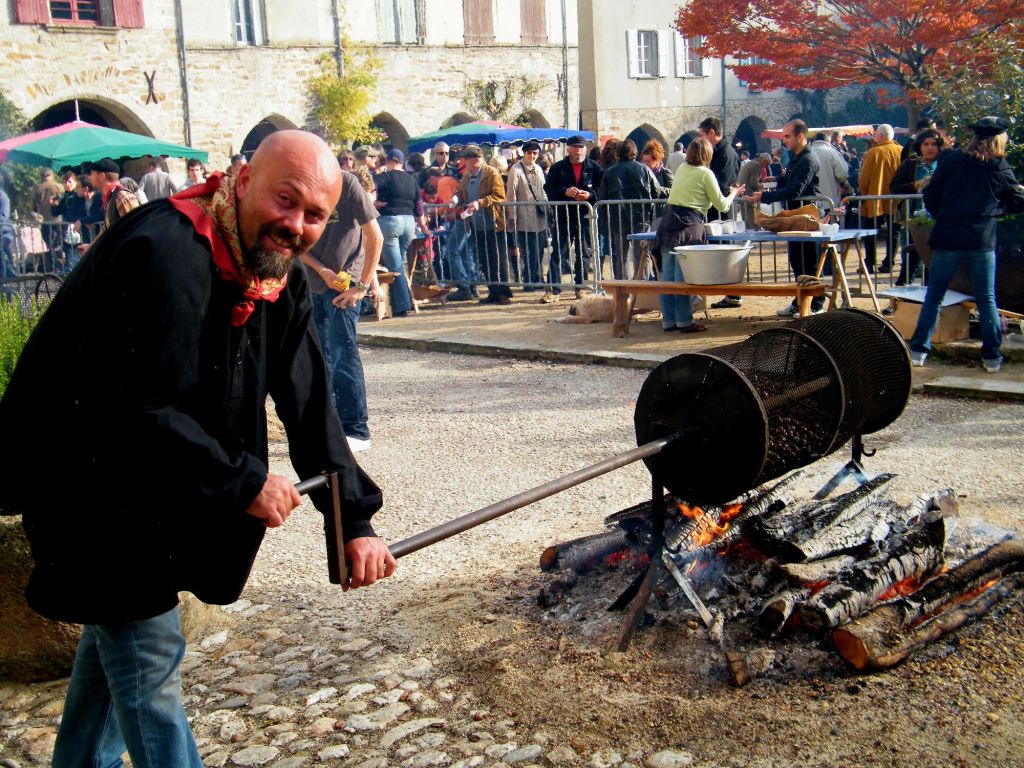 Dimanche après-midi, les doigts noircis, le geste un peu gauche – le cornet de roussettes dans une main, le verre de cidre dans l’autre- le public animera le cœur de la cité médiévale. Le mariage, tant attendu, de la châtaigne fauve et brillante avec le nectar blond et pétillant sera consommé. Les tonneaux se videront. Les grilloirs crépiteront. Les tourneurs tourneront, tourneront tourneront….