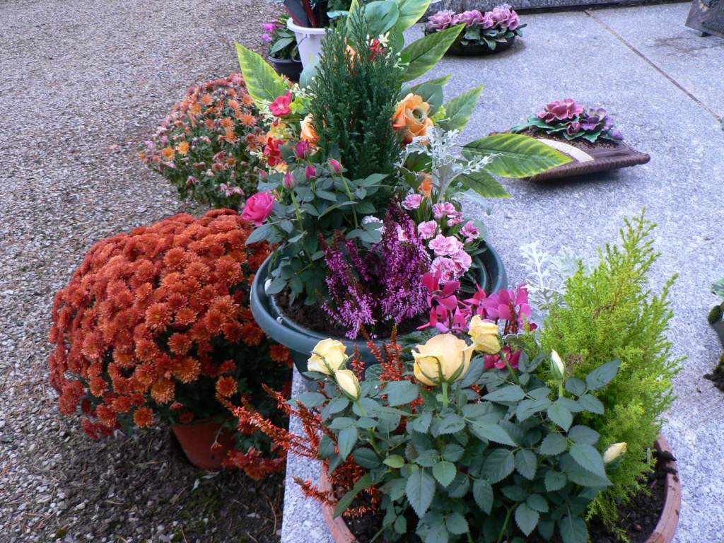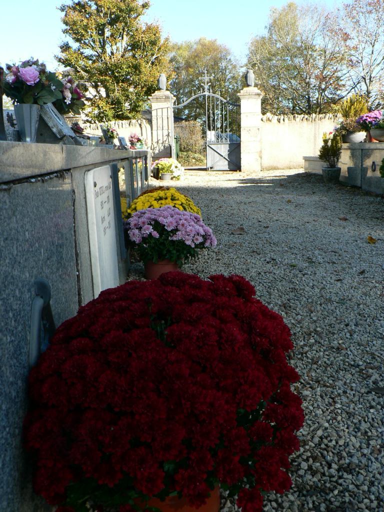 Dans les travées, leurs pas crissent sur les gravillons. Dans cette atmosphère feutrée, les fleurs vont émailler le calme de ces lignes de mémoire. Les fragances des cyclamens, bruyères, roses et autres chrysanthèmes, mêlés à ceux de la terre humide s’ élèvent, lentement, dans l’air d’automne. Chaque brassée diffuse déjà le subtil parfum de l’émotion. On se salue, on échange un mot, un souvenir, on partage un sourire, un regard, un silence.