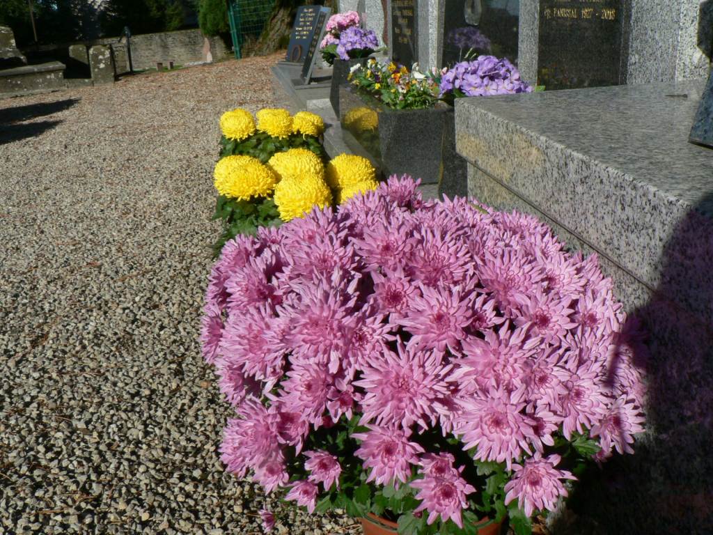 Les voitures se garent, le long des murs du cimetière. Les portières s’ouvrent délicatement, pour ne pas troubler le recueillement. Les familles, les bras chargés de pots de fleurs, de compositions colorées et de plantes aux teintes chatoyantes, avancent lentement.