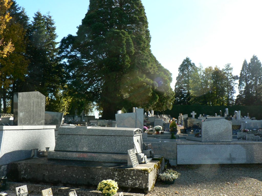 Le cimetière est là, au bout du chemin, ceint de murs de pierres grises, patinées par le temps. Tout autour, les séquoias majestueux veillent en silence. Leurs épines craquent sous nos pas. D’ habitude, en cette période, l’air gifle, le vent s’entête et la pluie verse ses longs sanglots. Pourtant, un rayon de soleil est venu, délicatement, dissiper la grisaille en cette veille de Toussaint. Le portail est grand ouvert. On entre dans la saison du souvenir… Les tombes, de marbre et de granit mêlées, anciennes et silencieuses, récentes et lumineuses s’alignent avec solennité. Ici, chaque pierre, chaque croix, chaque plaque murmure son histoire…