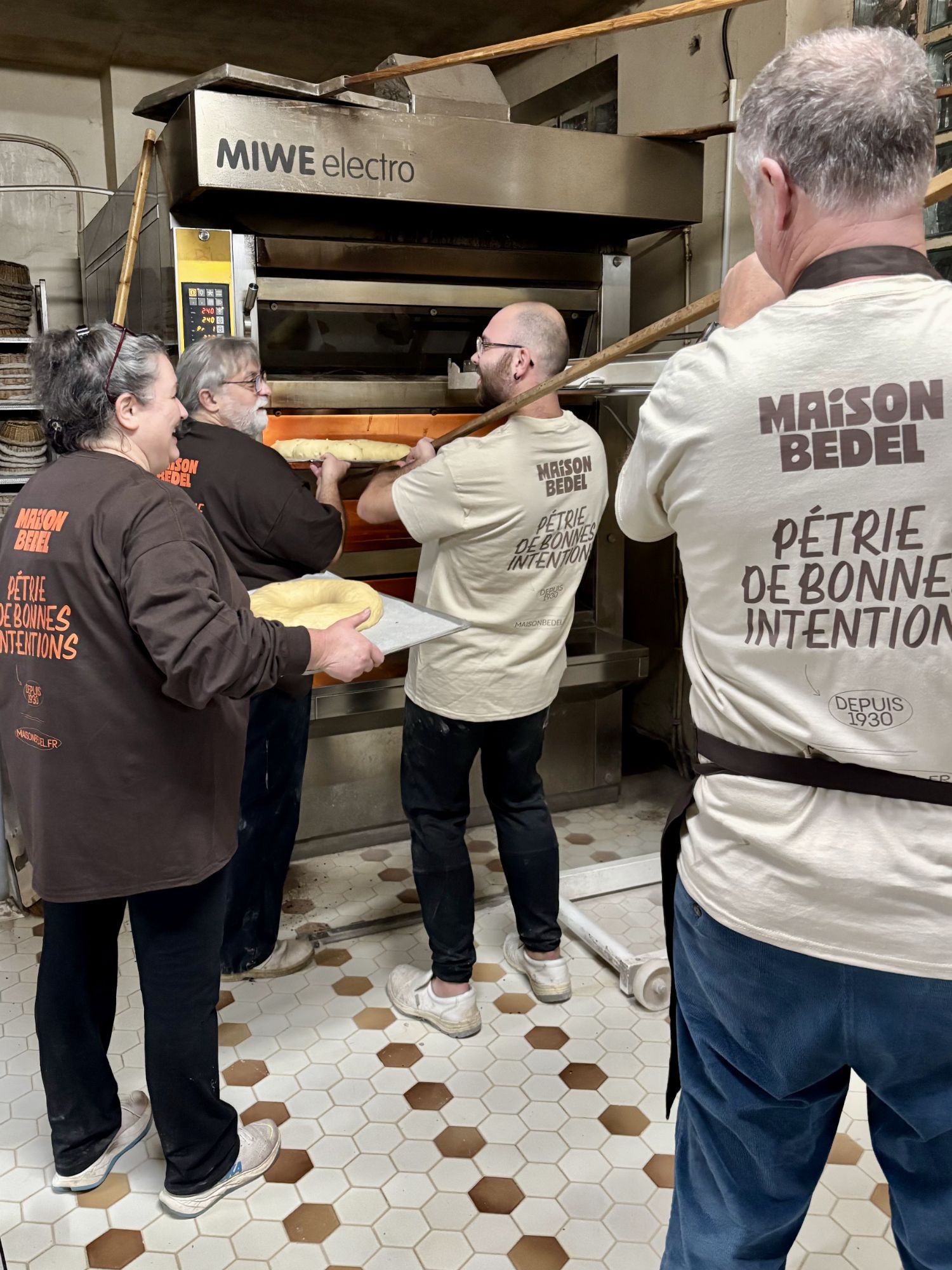 L’histoire de la famille Bedel s’écrit maintenant à plusieurs mains. Cinq associes – Monique, Frédéric, Jean-luc, Sylvain, Romain – conjuguent leur talents, à sa tête. « C’est un mariage de compétences » souligne Monique. Chacun met son énergie au service de l’entreprise : de la gestion à la fabrication, de la communication à la commercialisation… Jean-Luc, désormais retraité, veille toujours avec bienveillance, sur la boulangerie. Au fournil , la fabrication des pains et pâtisseries repose sur le talent des équipes de boulangers et pâtissiers. « Les uns viennent, les autres repartent » explique Monique, « mais on accueille ceux qui ont la passion du métier. »