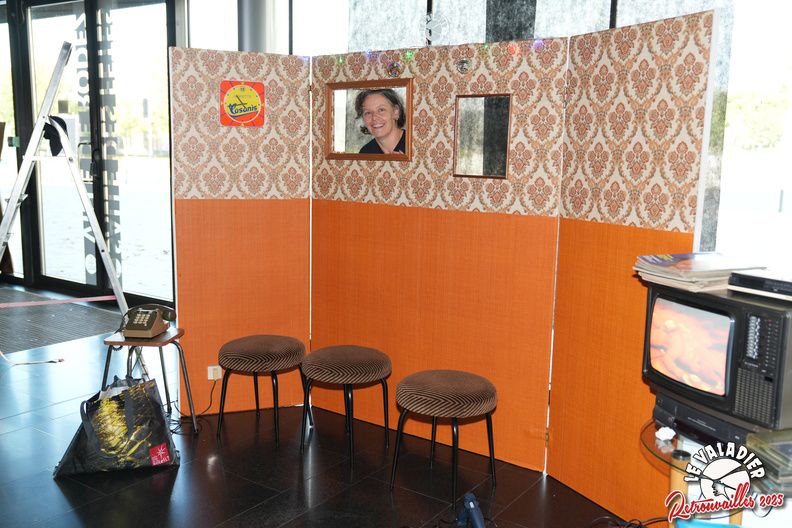 Vintage, avec les vieux tabourets restaurés et le décor en contreplaqué flanqué de sa tapisserie kitch pour immortaliser vos plus beaux sourires. Et, cerise sur la boule disco : un vieux téléphone. Pas un smartphone, non. Un vrai, avec cadran et fil qui s’enroule et se torsade. Quand on appuie dessus, il sonne.
