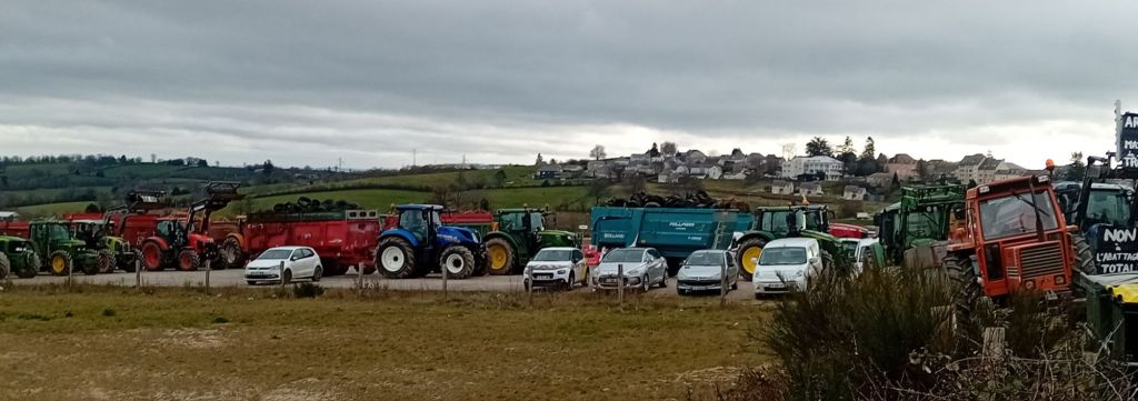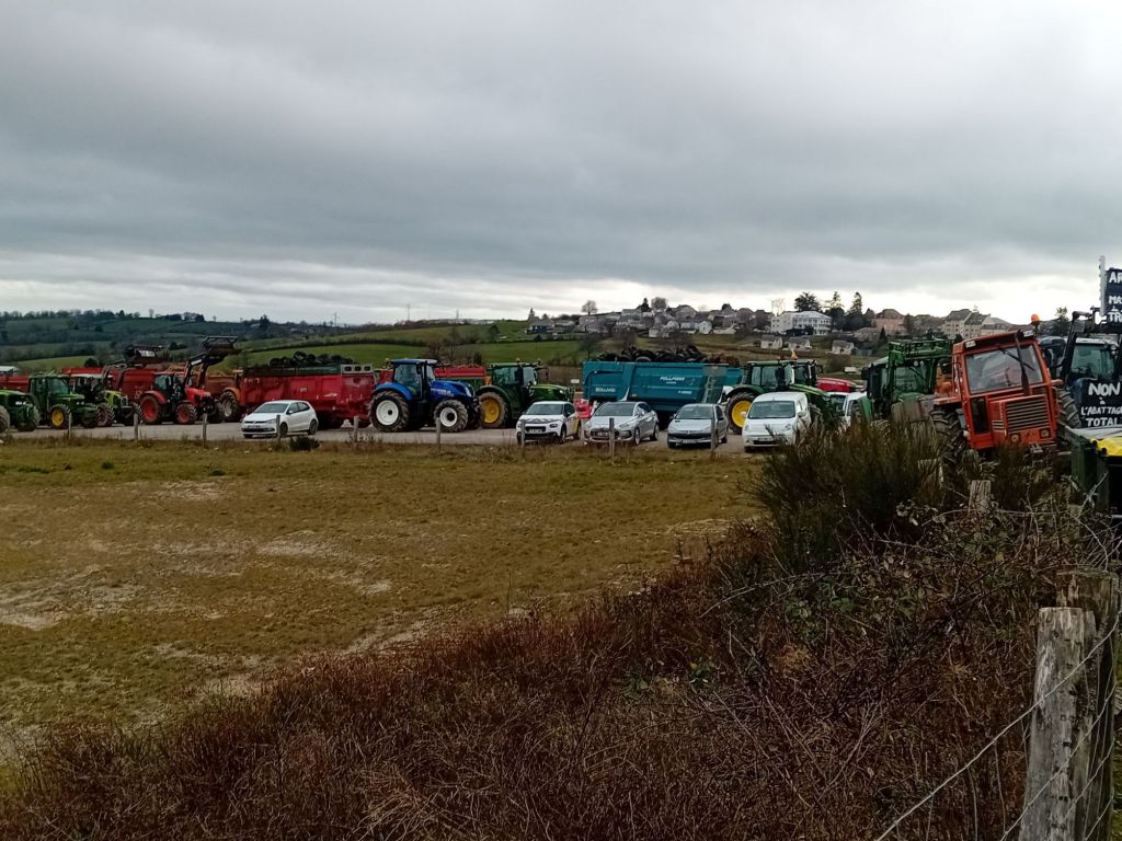 Ils s’étaient donné rendez-vous hier matin sur l’aire de co-voiturage du rond-point de Marengo, à Baraqueville. Des agriculteurs venus du Ségala (et au- delà !), ils étaient plus de 150 à investir les lieux pour donner corps à leurs inquiétudes et leur désarroi. Ils alignaient leurs tracteurs en travers de la 2×2 sur la RN 88. Les remorques étaient chargées de pneus, de bottes de paille, de fumier. Bref, de tout ce qui pouvait servir à faire barrage comme autant d’exutoires à leur colère, leur frustration, leur mécontentement, leur découragement, miroirs d’un quotidien devenu, déjà, si difficile…