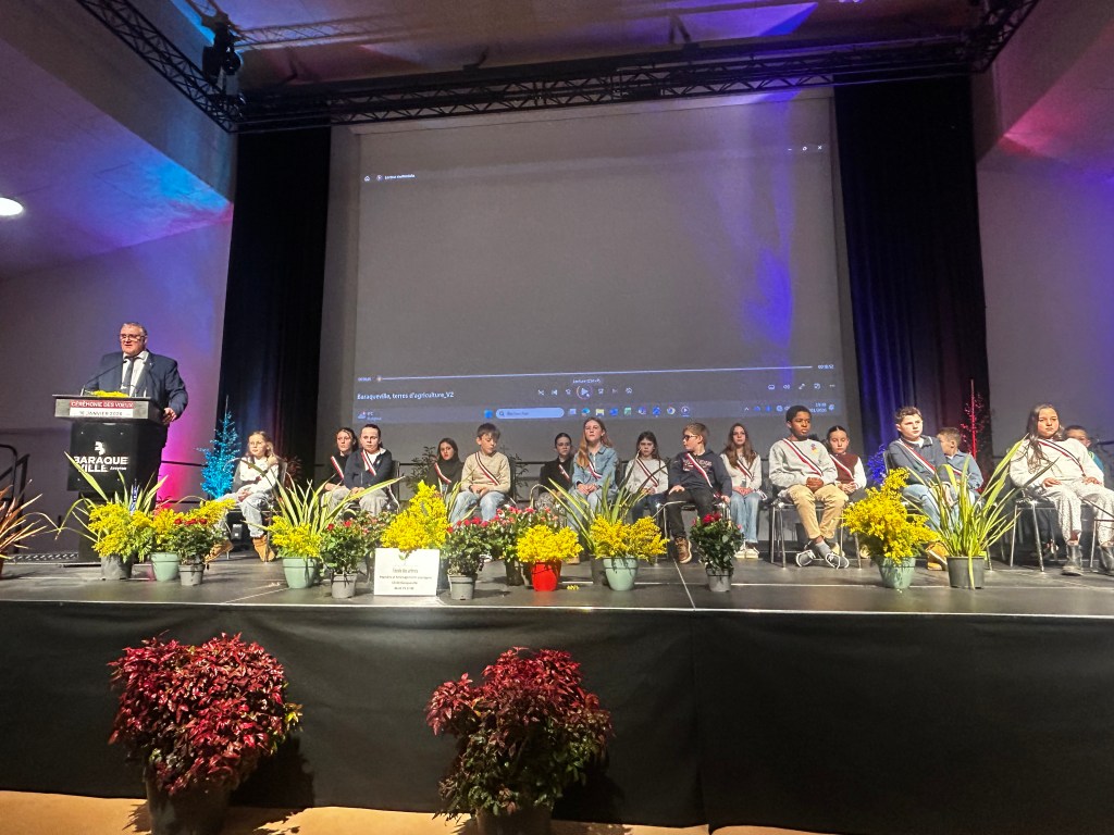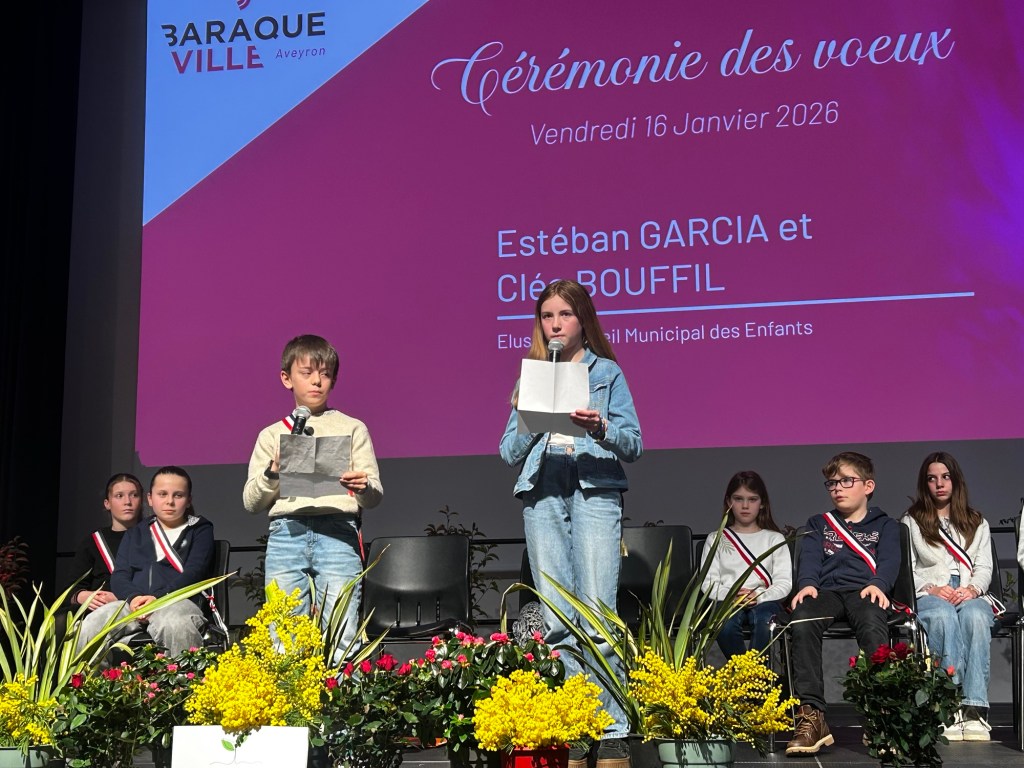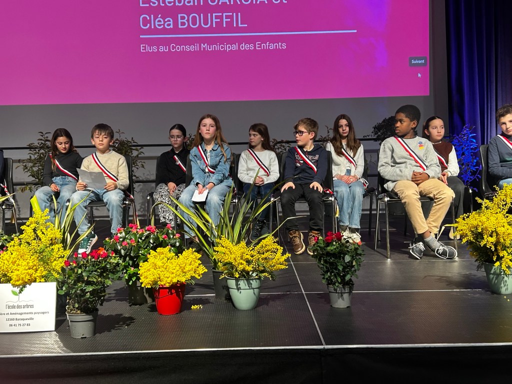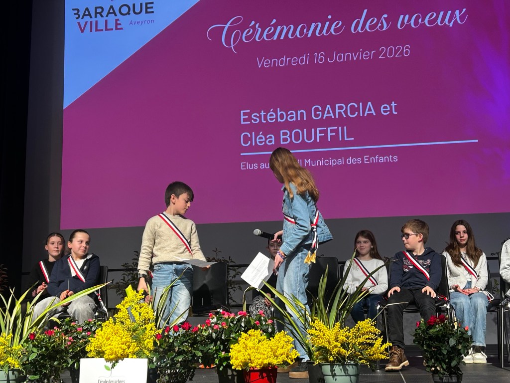 Sur scène, Esteban et Cléa, deux représentants du conseil municipal des enfants, ont pris la parole devant leurs camarades et les habitants. Avec un enthousiasme palpable, ils ont remercié leurs camarades des classes de CE2 à CM2 qui leur ont fait confiance et les ont élus. Ils ont présenté leurs projets et leurs idées, allant de la découverte du fonctionnement du conseil départemental et de la préfecture, à l’écoute de leurs aînés et à la mise en œuvre d’actions pour le plus grand nombre de Baraquevillois. Parmi leurs initiatives, ils ont notamment évoqué la création d’un espace de jeu pour enfants autour de la salle d’animation, démontrant une motivation et une énergie communicatives.