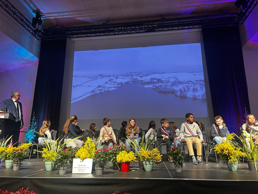 « Ce sont eux, ce sont eux notre avenir, ce sont eux qui, demain, feront la suite, ce sont eux qu’ il faut mettre mettre en avant. » me soufflait André At, conseiller départemental. Eux, ces enfants sagement assis sur l’estrade et manifestement très fiers d’arborer l’écharpe tricolore : l’équipe du conseil municipal des enfants. Le reflet d’une évidence : la relève et la continuité passent par les plus jeunes, et l’avenir de la commune repose sur l’engagement de toutes les générations.