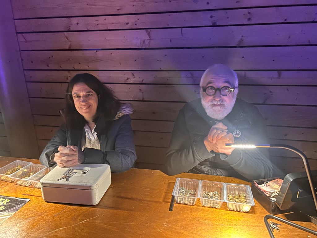 David, l’un d’entre eux, me lance d’un large sourire « On est là pour impressionner! » Je me garde bien de relever quoi que ce soit…histoire de ne pas les faire tomber de leur piédestal…d’un soir. Philippe, lui s’exclame : « C’est dur, le métier de parent ! » résumant avec humour sa fierté d’être là et de donner un coup de main aux jeunes organisateurs de la soirée.