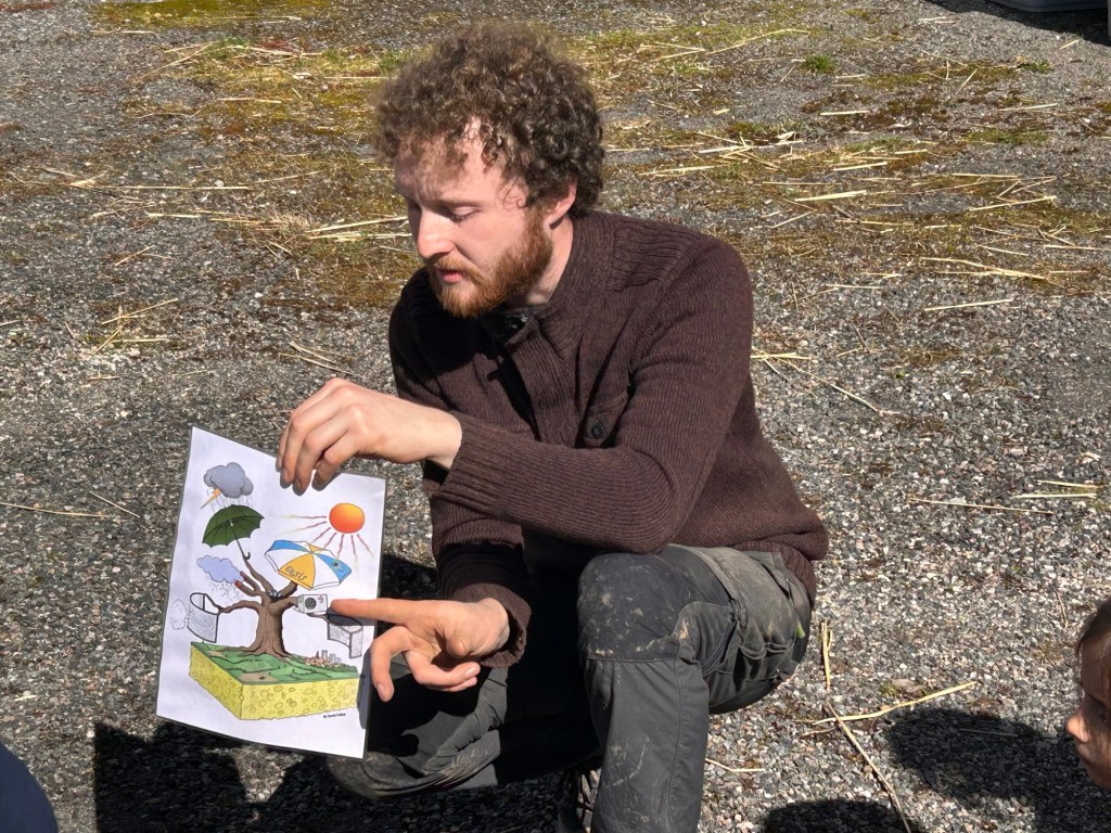 Avant passer à la pratique, un petit intermède théorique s’imposait autour de Steven . Quand la fonction du tronc, des branches, des feuilles et des racines n’eurent plus de secret pour eux, les enfants étaient impatients de passer à l’action.