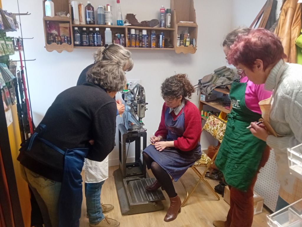 Dans la cordonnerie de Baraqueville, les effluves de cuir et de colle flottent dans l’air, grisants, presque enivrants. Ces parfums sont curieusement restés identiques à ceux de notre enfance quand on poussait la porte d’un de ces ateliers pour faire ressemeler une chaussure. Chaque machine, chaque outil, ici, affiche un charme désuet et semble garder jalousement les secrets d’un vrai savoir- faire. Dans cet univers, un peu hors du temps, Vanessa Muratet a choisi de marcher dans les pas de son père André. De fil en aiguille, fidèle à l’esprit de son enseigne depuis 2023 « De paire en fille », Vanessa ouvrait, récemment, son atelier, pour la première fois, à des stagiaires très motivées.