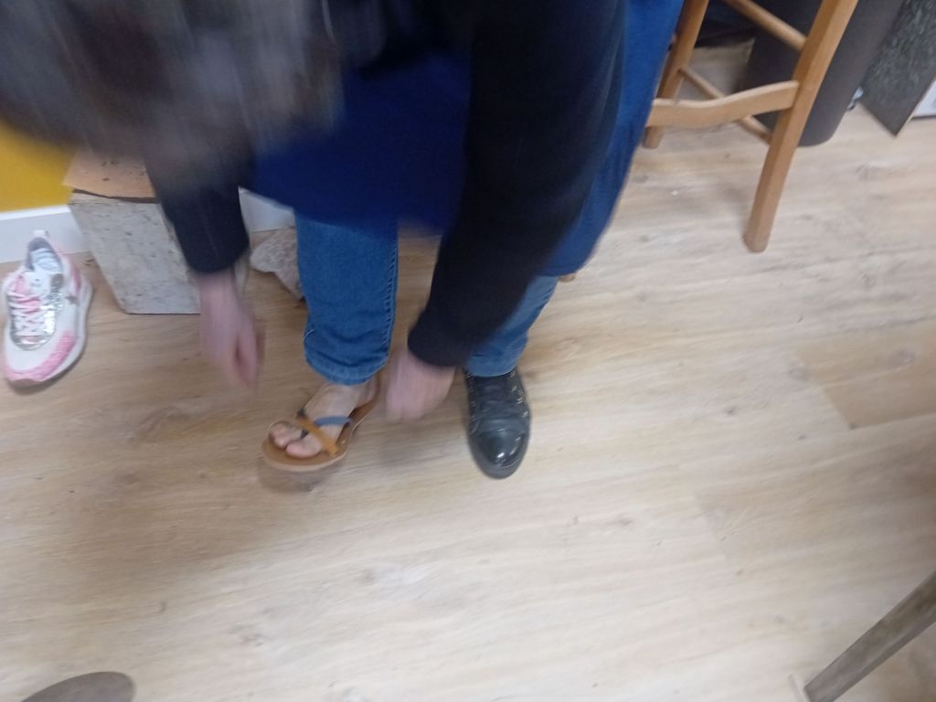 Christine, du village de Castanet avait rencontré Vanessa lors d’un marché de Noël . « Nous avions longtemps discuté autour de son stand ». Comme beaucoup de gens, elle ne trouvait pas chaussure à son pied-au sens propre du terme !- car ce qu’elle privilégie avant tout, c’est le confort. « Ce stage est donc l’occasion parfaite de réaliser une paire de sandales sur-mesure, à la fois esthétique et confortable » se réjouissait-elle. Christine confesse, également, des facilités manuelles et participe à de nombreuses activités, notamment, au Centre Social et Culturel de Naucelle. Elle aime le travail du bois, la céramique, le tricot, la cuisine, la couture et la danse : autant de raisons d’avoir des chaussures confortables !