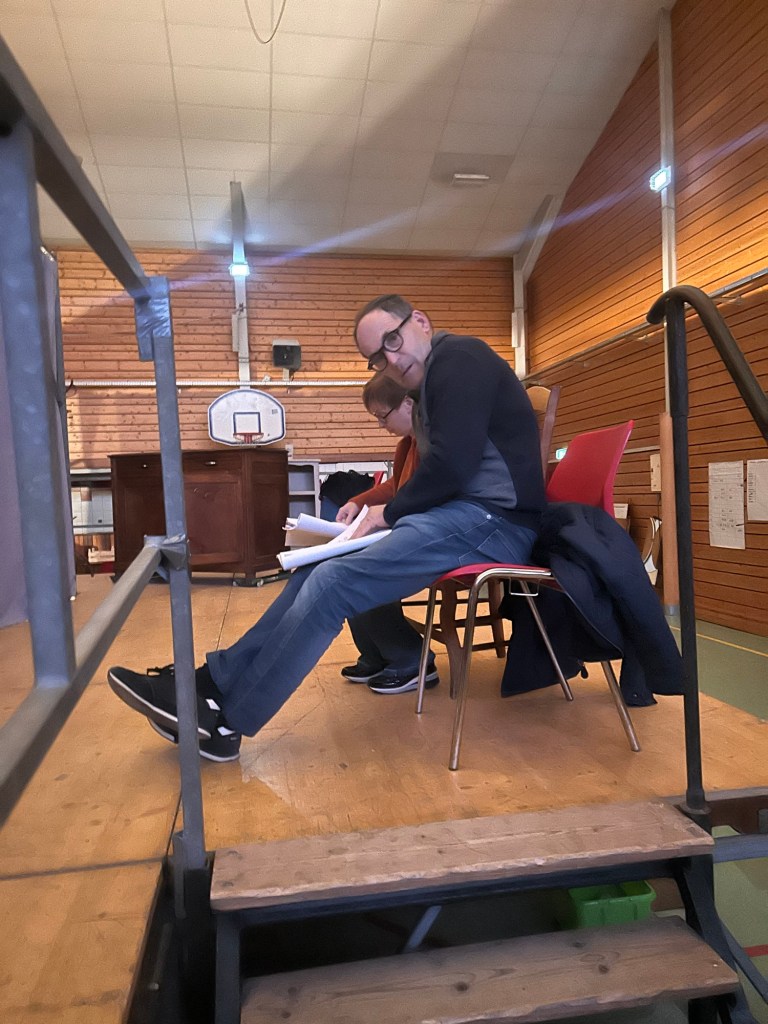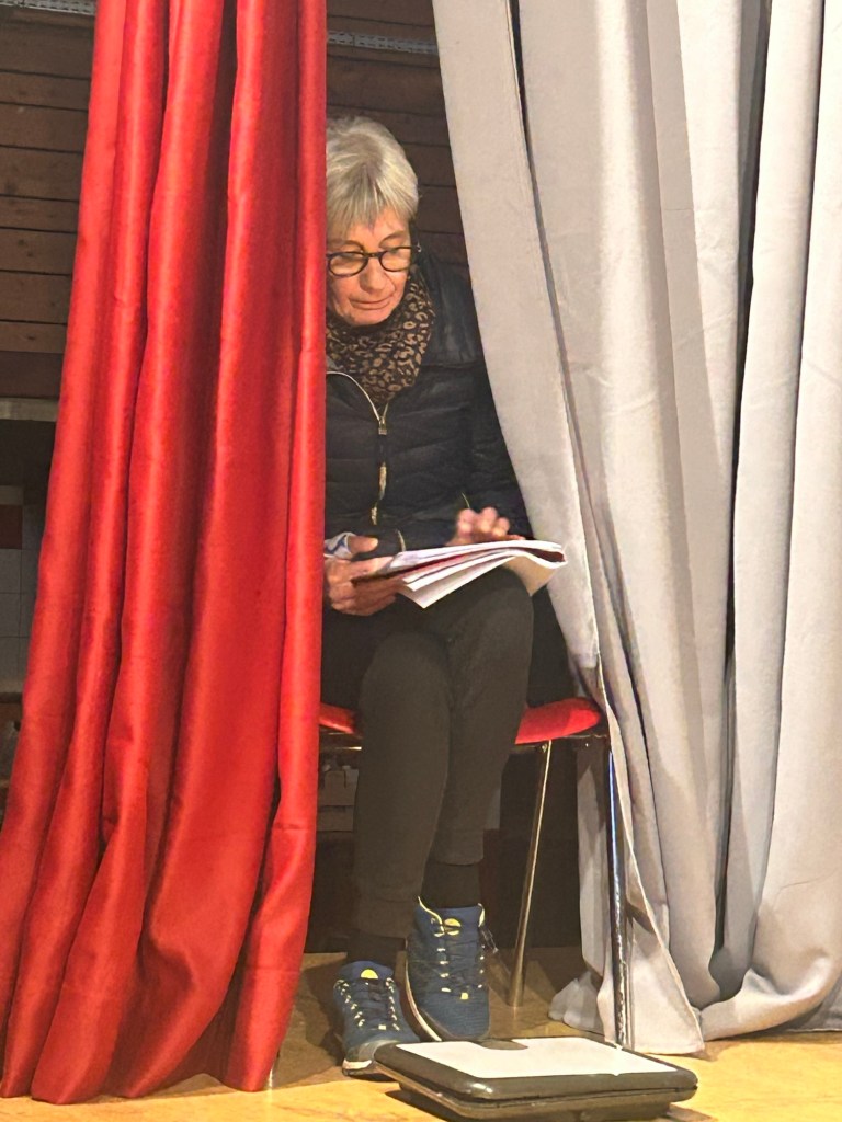 Toute la logistique scénique est en place depuis le début de la semaine, salle des Arméniès et donc les répétitions sur scène vont maintenant bon train, il ne manque plus que les costumes ! Le rideau rouge est levé et les comédiens déclament leur texte. Enfin ceux qui le savent parfaitement. Mais rien n’est perdu pour les autres puisque les souffleuses sont, fort heureusement, là ! Claude et Christine sont en alerte. Un mot ou même une phrase (!) oubliés ? Elles soufflent avec légèreté et précision, invisibles …mais essentielles, à l’abri des regards derrière leur pan de rideau.