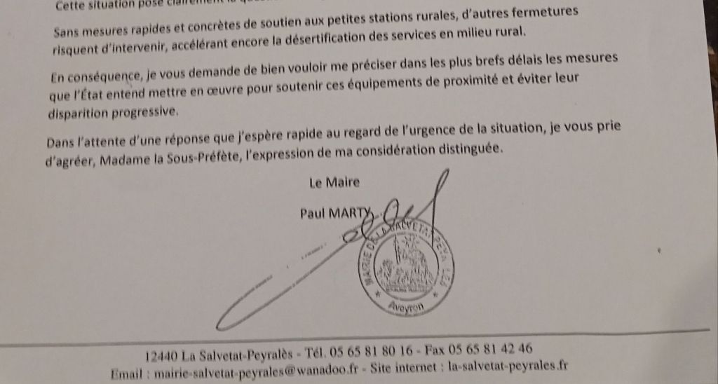 Mercredi soir, la sous-préfète Catherine Lupion lui téléphonait. Paul Marty rapporte : « Je l’ai remercié de l’intérêt qu’elle portait à la situation. Elle m’a assuré qu’elle ferait remonter ces doléances au plus haut niveau de l’État. J’en ai profité pour l’inviter à découvrir le village de la Salvetat-Peyrales » ajoute-il avec un brin de malice.