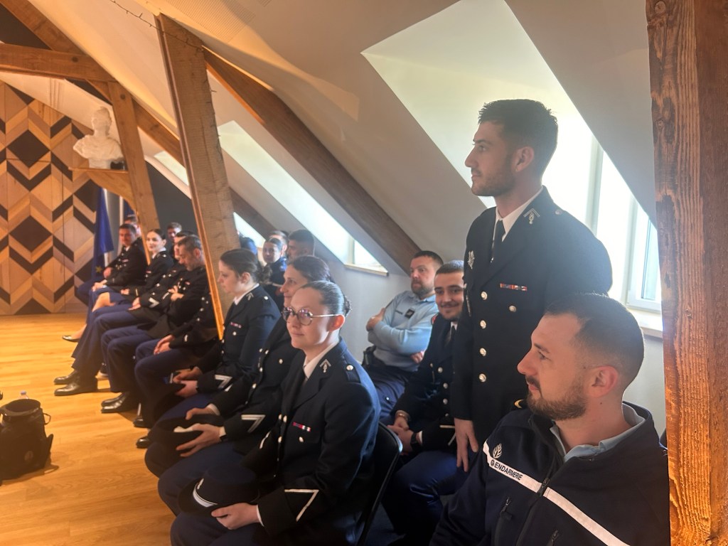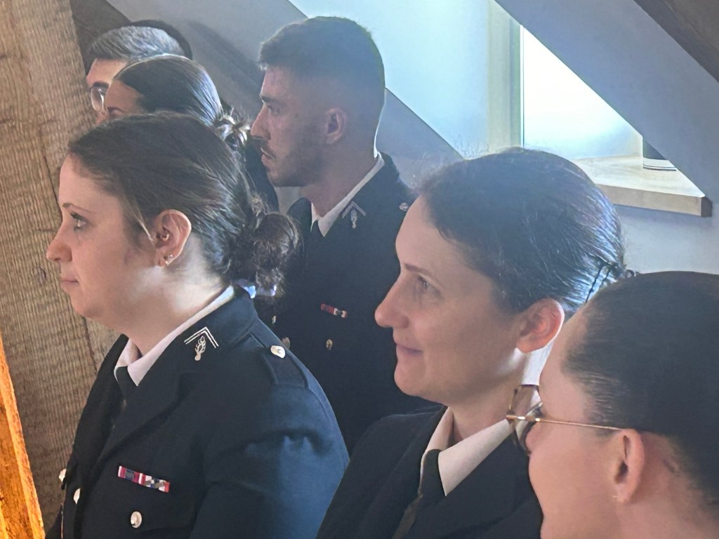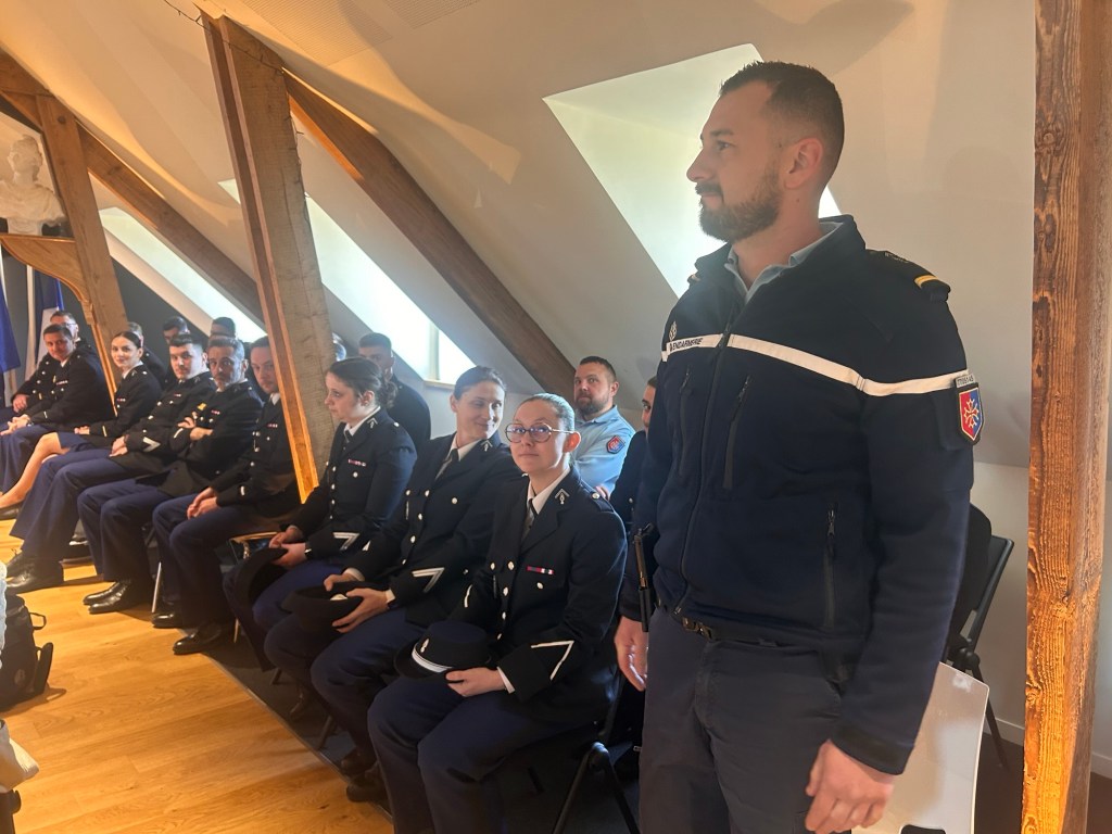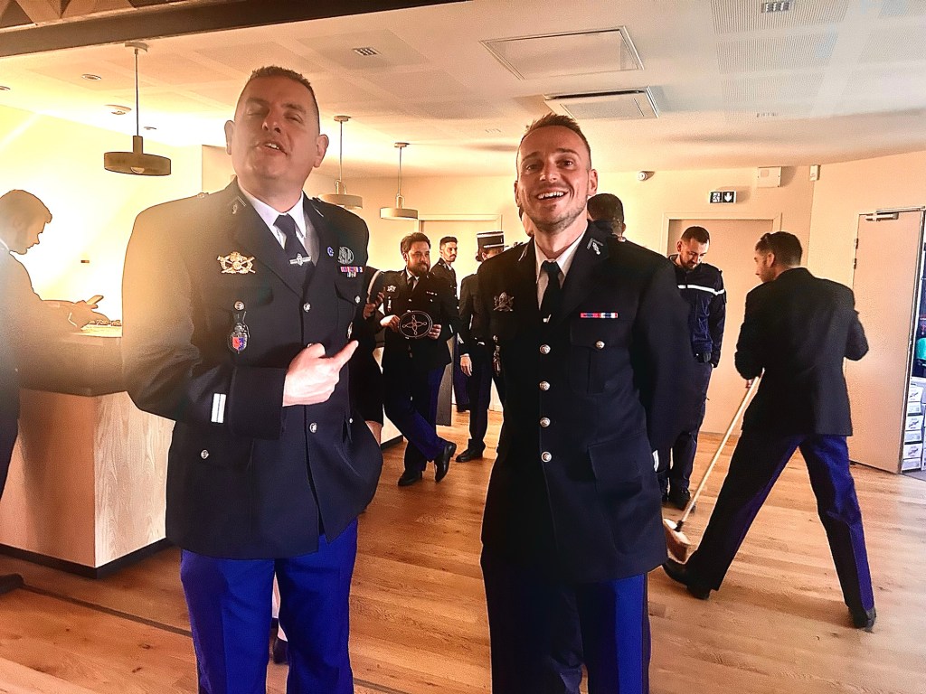 Pourtant, très vite, autre chose s’imposait. Derrière la rigueur des tenues, les sourires et les poignées de main chaleureuses se multipliaient. Un accueil sympathique qui cassait immédiatement cette impression de distance instaurée par l’uniforme. C’est alors que l’adjudant Gaétan Bourrier, commandant de la brigade de Baraqueville, venait me saluer. Un échange simple, direct, presque familier. « Bonjour, c’est moi qui vous ai contactée », dit-il en souriant.
