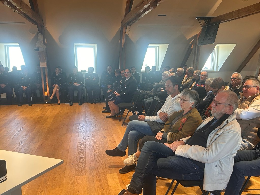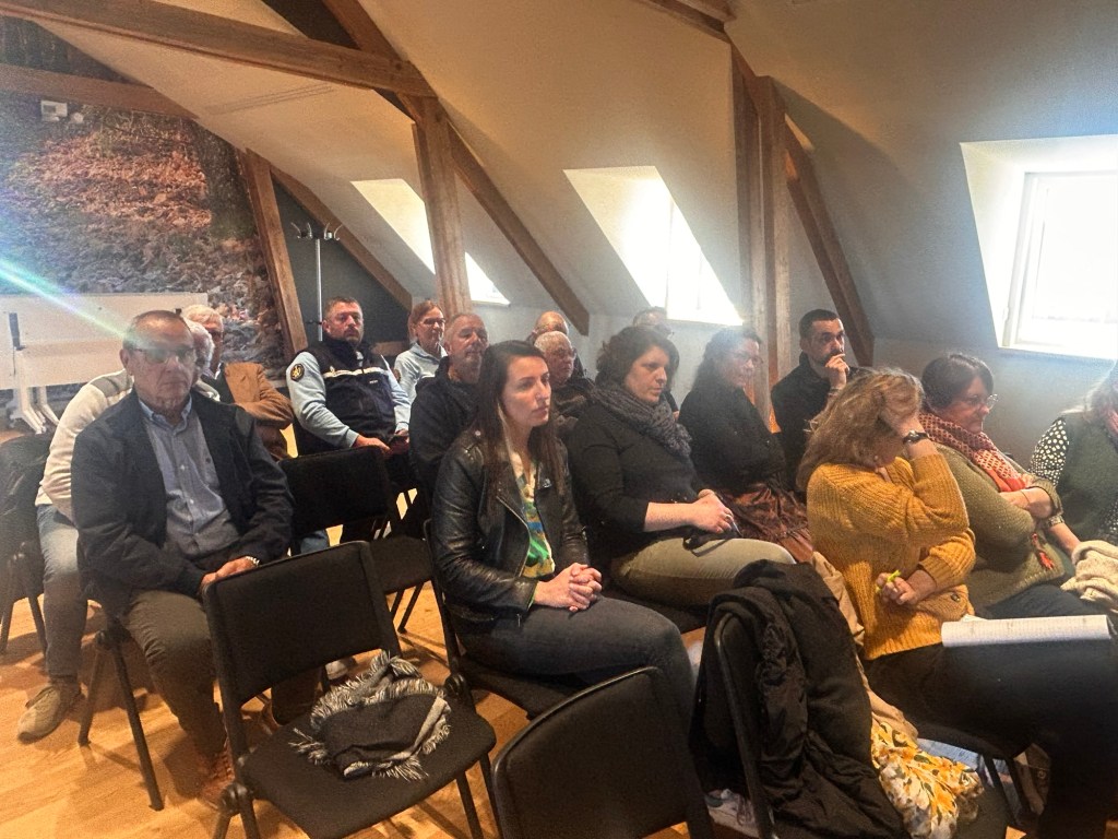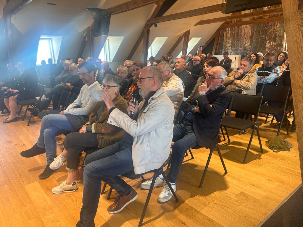 La salle, vaste et lumineuse, située tout en haut de la mairie de Baraqueville, semblait faite pour cela : un lieu où l’on prend de la hauteur, au propre comme au figuré. Les chaises alignées, la lumière qui entre largement, et cette impression d’être à la fois dans un moment officiel et une scène de vie locale bien ancrée.
