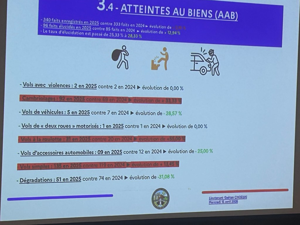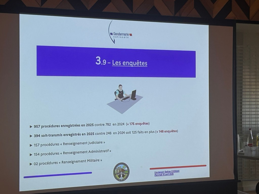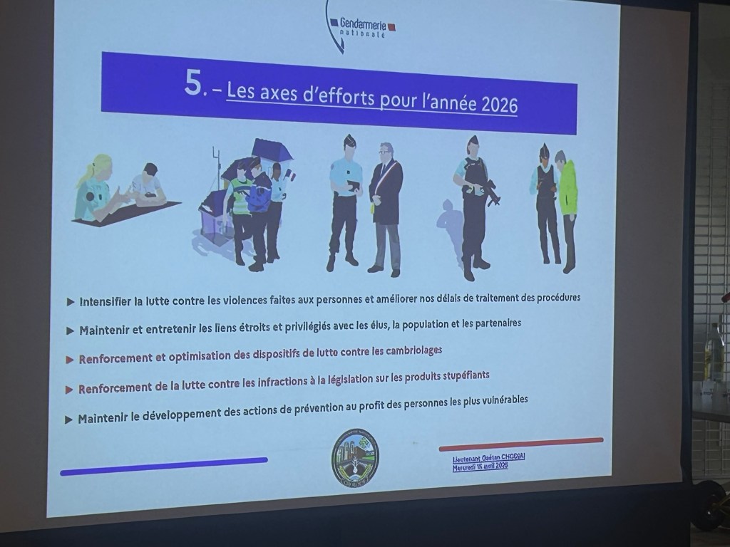 Cette réunion comptait le volet plus technique du bilan, avec la présentation détaillée des chiffres de l’activité de la communauté de brigades. Interventions, procédures, résultats judiciaires ou encore sécurité routière : l’ensemble des données fait l’objet d’un exposé précis, ci-dessous en images afin de vous permettre sa lecture détaillée.