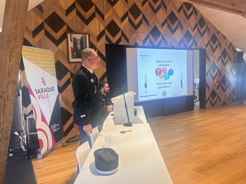 Le chef d’escadron Thomas Maugard, commandant de la compagnie de Rodez depuis 3 ans ouvrait la séance, saluant et remerciant les participants. Il en présentait les grandes lignes avant de laisser la parole au lieutenant Gaétan Chodjaï, à la tête de la communauté de brigade de Rodez depuis août 2025. Il revenait ensuite pour ouvrir les échanges avec l’assistance.