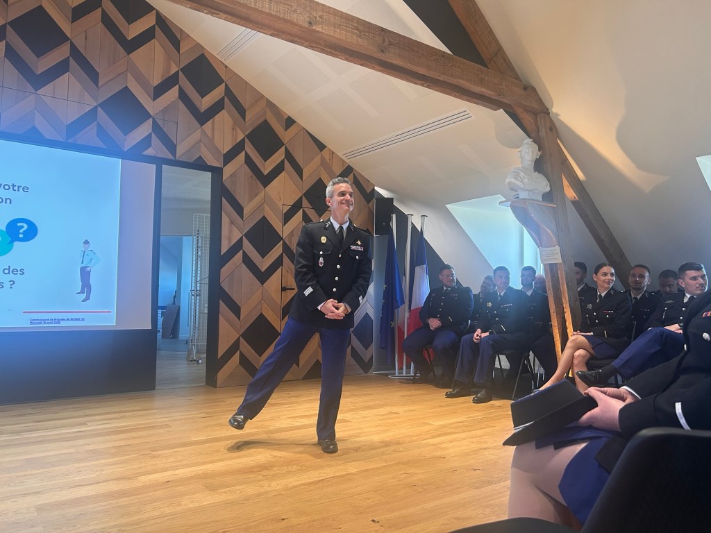 Un pas dans la salle, et l’uniforme s’imposait d’emblée avec ce léger flottement, presque comique, du regard civil qui ne sait pas trop où se poser. Je me surprenais à détailler un bouton, une médaille, à me demander s’il fallait sourire, saluer, me faire discrète. Les vareuses bleues occupaient l’espace, avec leurs insignes, leurs barrettes colorées, leurs écussons et toutes ces décorations dont, personnellement, je ne maîtrise aucun code ! Difficile, dès lors, de savoir qui est qui, de distinguer les grades : tout m’apparaissait très normé, presque hermétique au premier regard.