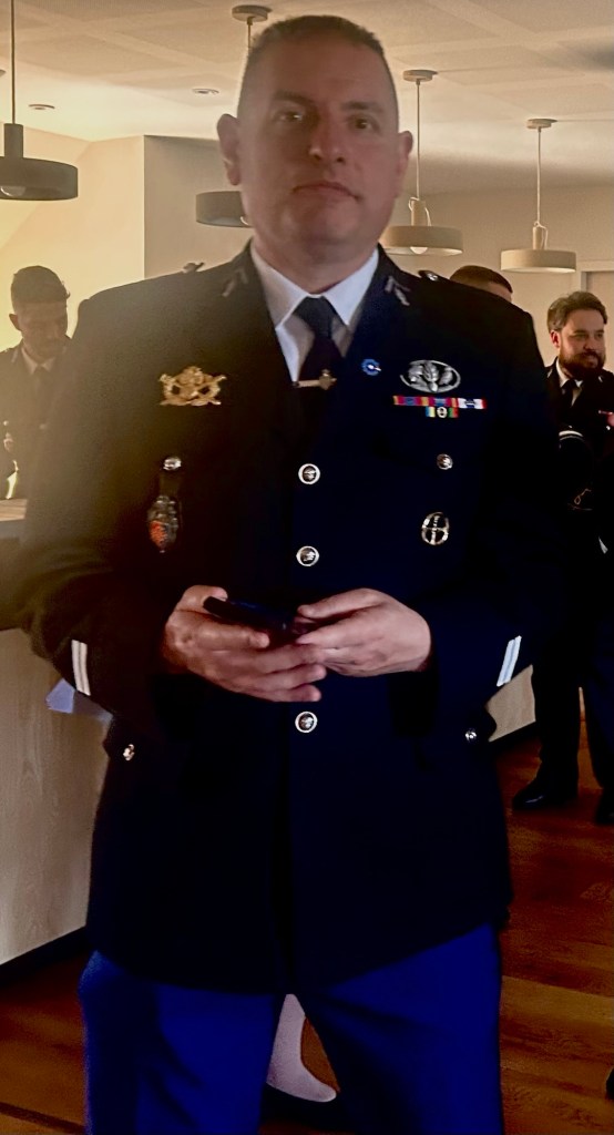 Grand, solide, la carrure imposante, le commandant de la communauté de brigades, donne, d’abord, une impression d’autorité presque infranchissable. Puis ce détail — ce képi, cette photo, cette référence intime — viennent fissurer cette image première. Derrière la stature, quelque chose de plus simple apparaît, une humanité discrète, presque inattendue. Et même une pointe d’humour !