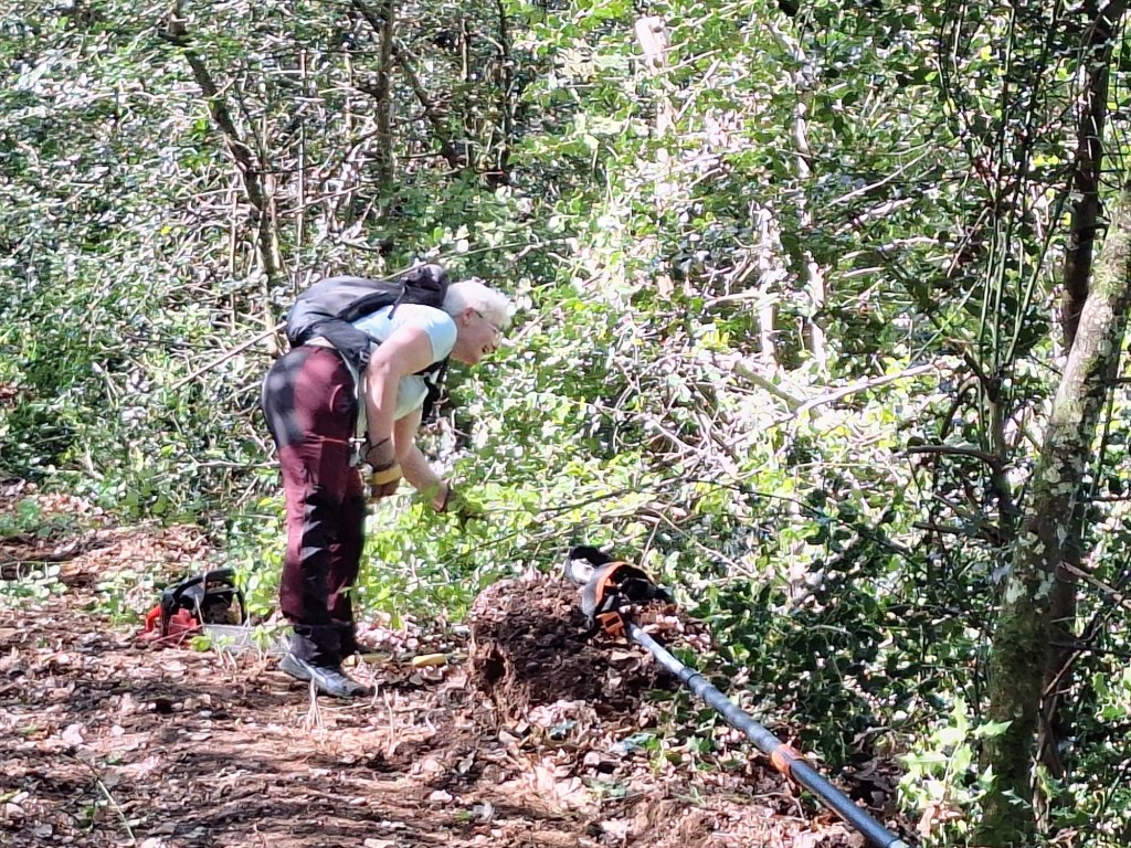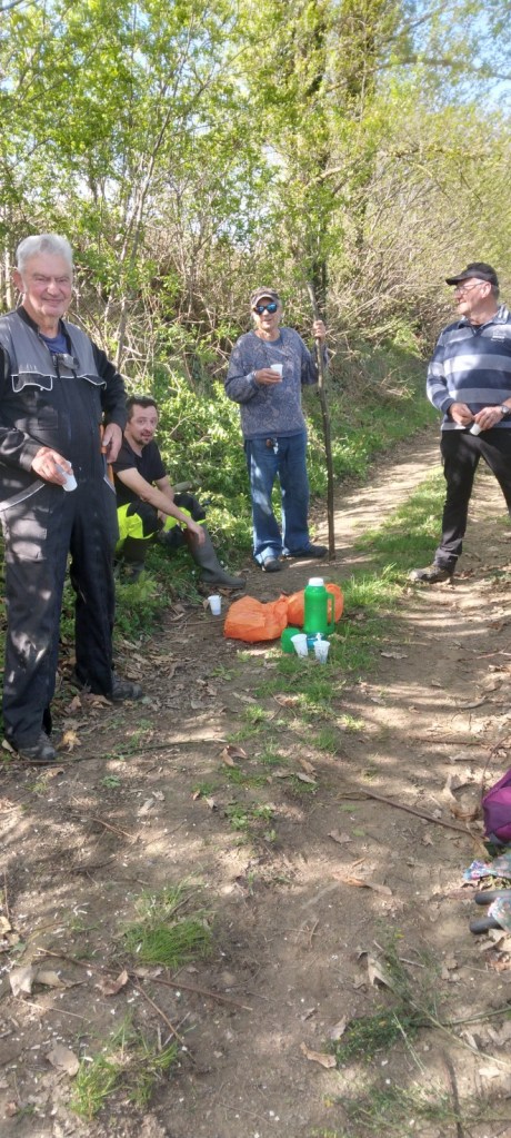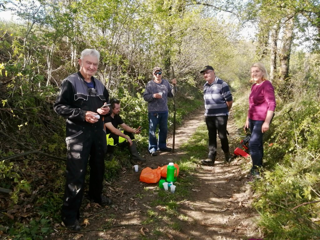 Malgré les aléas, l’ambiance restait légère. On plaisantait d’un bout à l’autre du chantier, on s’interpellait de talus en talus. Le nettoyage de chemin est, incontestablement, un travail sérieux- mais avec cette subtilité propre aux bénévoles- le faire sans se prendre au sérieux !