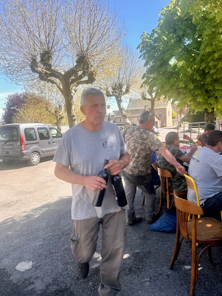 Le temps s’étirait. On débarrassait, on rangeait, mais personne ne semblait vraiment pressé de partir. Les groupes se reformaient dehors, sous les arbres, ou à l’intérieur, autour du bar du local des chasseurs, à refaire le monde. Les conversations se prolongeaient, les rires aussi. On sentait que des liens s’ étaient créés, que quelque chose s’était joué.