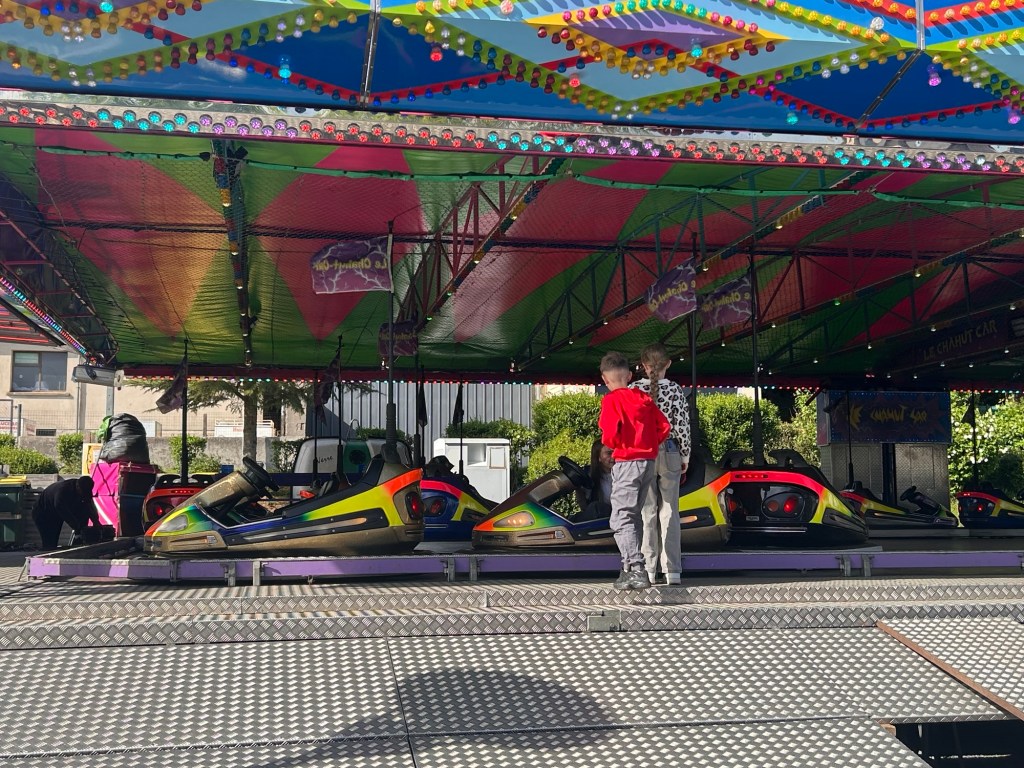 Les auto-tamponneuses tournent les premières. Incontournables. Elle deviendront vite le point de rendez-vous des adolescents. On s’y retrouve, on s’y observe, on s’y heurte aussi, volontairement. Entre deux collisions, les rires fusent déjà , et j’ai pu observé les premiers jeux de regards ….