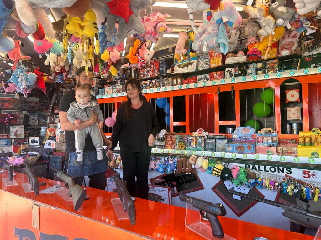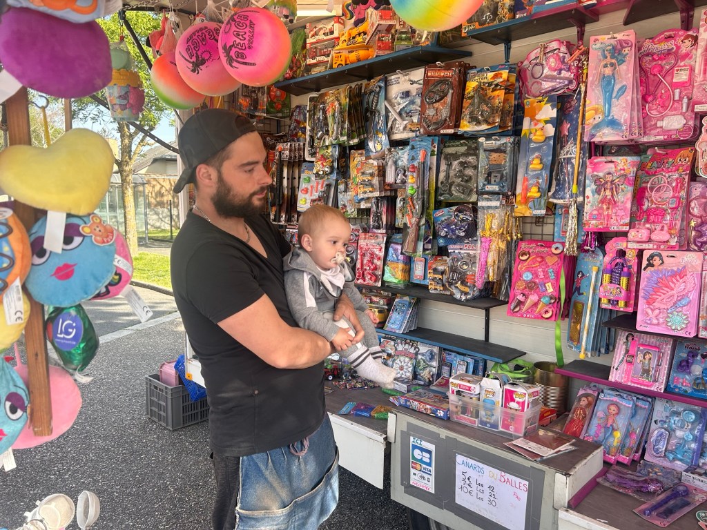 Du côté de la pêche aux canards, Raphaël supervise les opérations, exceptionnellement éloigné de son habituel stand de tir. Membre de la famille Soulayrol, longue lignée de forains,bien connue en Aveyron, il incarne, fièrement, la cinquième génération. Une histoire qui remonte loin, jusque dans les années de guerre. Dans ses bras, le petit Jayson observe. La relève semble déjà toute trouvée.