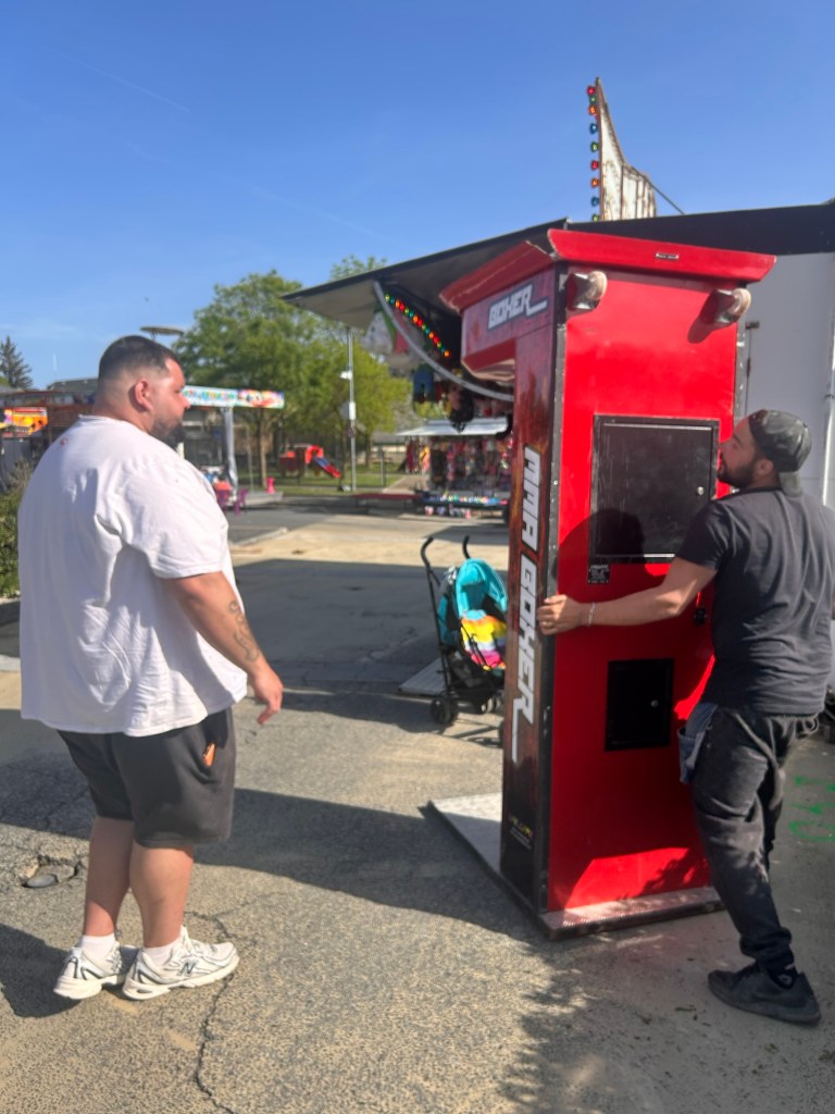 Juste à côté, un autre jeu capte déjà les regards, presque malgré lui : le Casino Dolby. Derrière sa vitre, les jetons s’accumulent, avancent lentement, poussés par un mouvement régulier. Le cliquetis est discret mais entêtant. On regarde tomber les pièces… ou presque tomber. Car tout est là : dans cet équilibre fragile, ce moment suspendu où tout semble prêt à basculer. Ce sont aussi des forains aveyronnais qui tiennent ce stand…